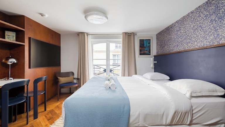 Paris La Belle - Marais bietet Übernachtungsmöglichkeiten mit modernem Komfort, einschließlich Klimaanlage und kostenlosem WLAN. Die Unterkunft ist außerdem mit einer 24-Stunden-Rezeption, einem Conciergeservice und Sicherheitsmaßnahmen ausgestattet, um einen angenehmen Aufenthalt zu gewährleisten.