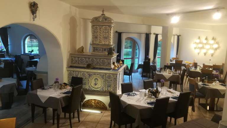Der gastronomische Bereich umfasst ein Restaurant und eine Bar, in denen täglich Frühstück und Mittagessen serviert werden. Auf Anfrage sind spezielle Diätgerichte erhältlich. Einmal in der Woche werden im Hotel Abendessen mit Südtiroler Spezialitäten angeboten. Getränke sind nicht in der Halbpension enthalten. Buffetfrühstück wird angeboten, und es gibt auch eine Snackbar sowie Angebote für spezielle Ernährungsbedürfnisse.