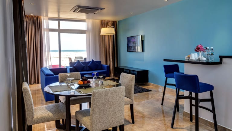 Das Park Inn by Radisson Hotel and Residence Duqm verfügt über 73 Zimmer und bietet eine Vielzahl an Annehmlichkeiten, darunter einen Aufzug, Gepäckaufbewahrung, einen Safe sowie eine Wechselstube. WLAN steht in den öffentlichen Bereichen zur Verfügung. Das freundliche Personal an der Rezeption steht den Gästen bei Fragen zur Verfügung. Die Unterkunft bietet auch behindertengerechte Einrichtungen sowie einen schönen Garten und einen Spielplatz. Zudem gibt es einen 24h-Sicherheitsdienst, eine Autovermietung, einen Transferservice und einen Zimmerservice. Ein Parkplatz ist vorhanden. Das Hotel bietet auch ein Business-Center.