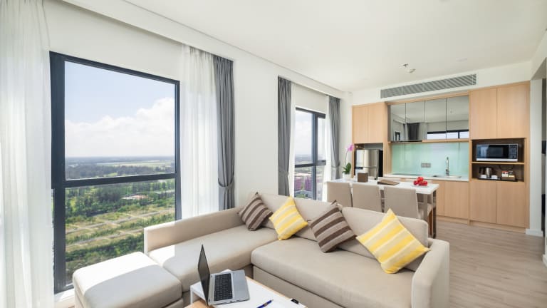 Das Hotel Park Regis Cocobay befindet sich in Da Nang, in der Nähe eines Strandes. Der Flughafen ist ca. 15 km entfernt, das Stadtzentrum liegt etwa 10 km entfernt und ein Golfplatz ist ca. 200 m entfernt.