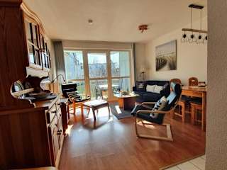 Die Ferienwohnung umfasst 1 Schlafzimmer, ein Wohnzimmer, ein Badezimmer mit Dusche sowie eine gut ausgestattete Küchenzeile mit Kühlschrank und Herdplatte. Ein Flachbild-TV ist ebenfalls verfügbar. Die Unterkunft bietet einen Balkon mit Blick auf den Garten. Handtücher und Bettwäsche können gegen Aufpreis bereitgestellt werden.