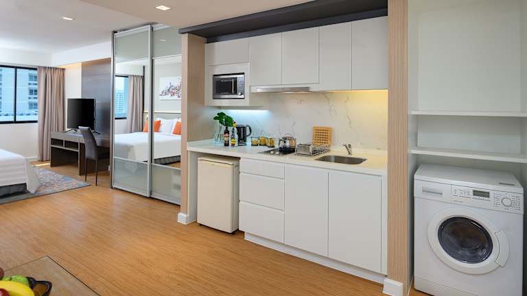 Das PARKROYAL Suites Bangkok - SHA Plus Certified ist eine ideale Unterkunft im Herzen von Bangkok, die Ihnen einen Genius-Rabatt bietet. Sie können eine pulsierende Stadt erleben und den Komfort einer voll ausgestatteten Suite mit einer Küchenzeile, einer Waschmaschine und einem Trockner genießen. Das Hotel bietet auch einen Fitnessraum, einen Pool und eine Sauna für zusätzlichen Komfort. Die Lage des Hotels ist günstig, in der Nähe von Einkaufszentren, Restaurants und Sehenswürdigkeiten. Buchen Sie jetzt Ihren Aufenthalt und profitieren Sie von den Annehmlichkeiten des PARKROYAL Suites Bangkok - SHA Plus Certified.
