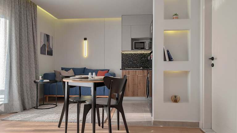 Die Apartments sind mit einer voll ausgestatteten Küchenzeile, einem Flachbild-TV und einem eigenen Badezimmer ausgestattet. Die Badezimmer verfügen über eine Dusche, kostenlose Pflegeprodukte, einen Haartrockner sowie eine Badewanne. Hausschuhe werden bereitgestellt.