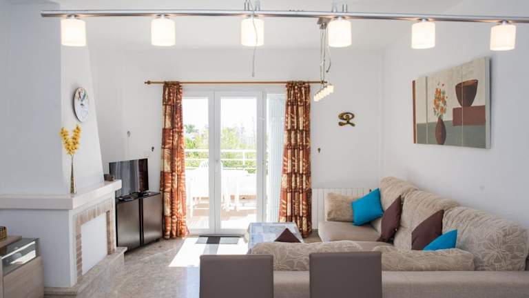 Die Ferienwohnung ist mit Bettwäsche, Handtüchern, einem TV sowie einer voll ausgestatteten Küche eingerichtet. Ein Balkon mit Meerblick ergänzt die Ausstattung der Unterkunft.