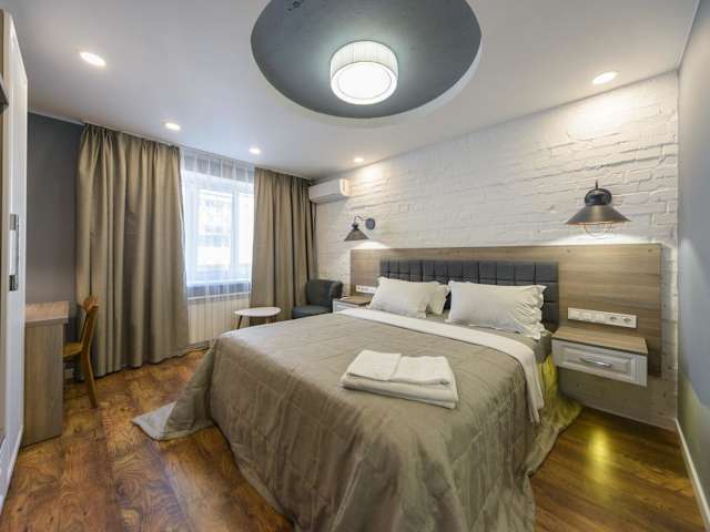 Das Partner Guest House Saksahans'koho bietet moderne Apartments im Herzen von Kiew. Mit kostenfreiem WLAN, Sat-TV und einer voll ausgestatteten Küchenzeile sind die Apartments ideal für einen komfortablen Aufenthalt. Die zentrale Lage an der Saksahanskogo-Straße ermöglicht es Ihnen, Restaurants, Bars und historische Gebäude zu erkunden. Der U-Bahnhof Palats Sportu ist nur wenige Gehminuten entfernt und bietet eine gute Anbindung an den Rest der Stadt.