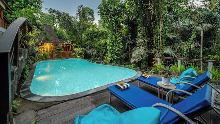 Das Parvati Retreat Villas bietet einen Außenpool, in dem Sie sich an warmen Tagen erfrischen können. Der Garten rund um das Hotel lädt zum Entspannen und Verweilen ein. Genießen Sie die ruhige Atmosphäre und lassen Sie den Alltagsstress hinter sich. In der Umgebung gibt es auch viele Aktivitäten und Sehenswürdigkeiten, die Sie erkunden können, wie zum Beispiel den Affenwald von Ubud.