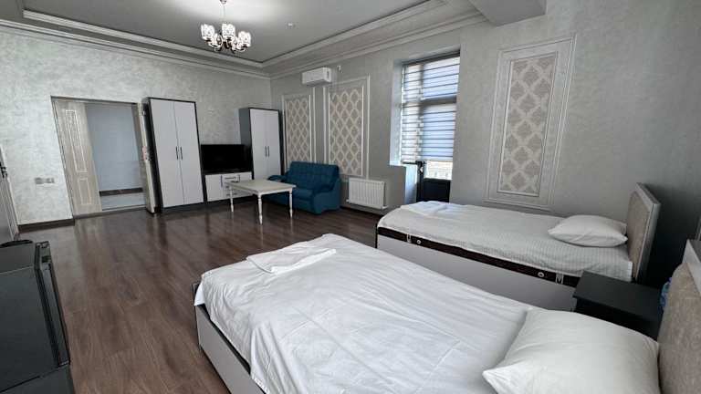 Die klimatisierten Zimmer des Parvoz Hotels sind mit einem Schreibtisch, einem Wasserkocher, einer Minibar, einem Safe und einem Flachbild-TV ausgestattet. Jedes Zimmer verfügt über ein eigenes Badezimmer mit Dusche. Die Zimmer sind zudem mit Bettwäsche und Handtüchern ausgestattet.