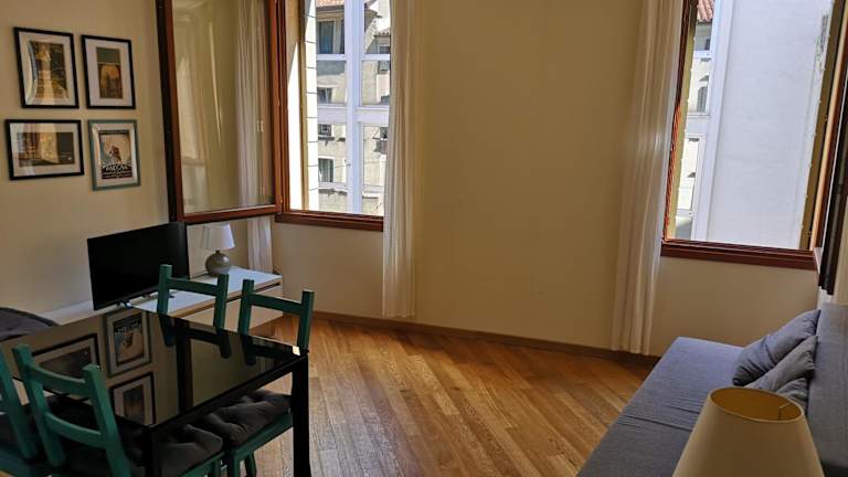 Die Ferienwohnung bietet ein Schlafzimmer, ein Wohnzimmer und eine voll ausgestattete Küche mit Kühlschrank und Kaffeemaschine. Zudem verfügt sie über ein Badezimmer mit Bidet und Dusche. Handtücher und Bettwäsche werden bereitgestellt.