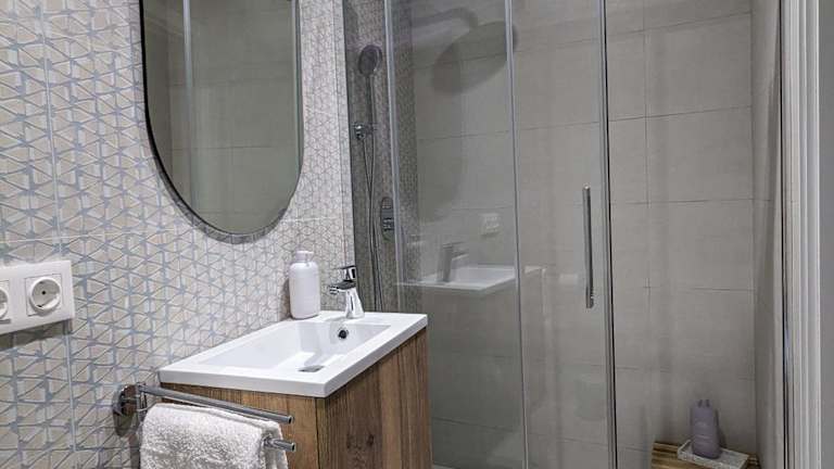 Die Ferienwohnung umfasst 2 Schlafzimmer und ein Wohnzimmer. Sie verfügt über eine voll ausgestattete Küche mit Kühlschrank und Kaffeemaschine. Darüber hinaus sind 2 Badezimmer mit Dusche und kostenlosen Pflegeprodukten vorhanden. Handtücher und Bettwäsche werden bereitgestellt.