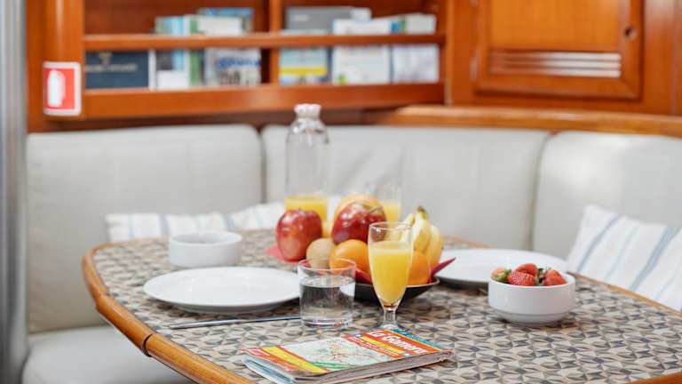 Da es sich um ein Boot handelt, gibt es keine Restaurants vor Ort. Sie haben jedoch die Möglichkeit, Ihre eigenen Mahlzeiten in der voll ausgestatteten Küche zuzubereiten und diese auf der Terrasse mit Stadtblick zu genießen. Alternativ können Sie die nahegelegenen Restaurants und Cafés erkunden und lokale Spezialitäten probieren.
