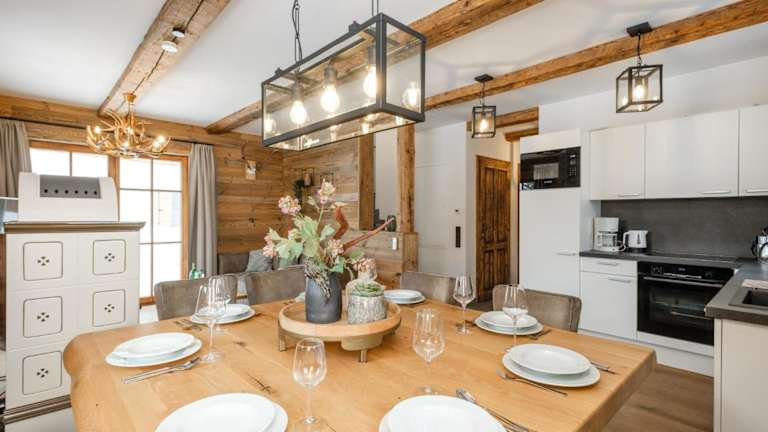 Das Chalet umfasst eine voll ausgestattete Küche mit Kühlschrank und Kaffeemaschine sowie 8 Badezimmer mit Duschen. Handtücher und Bettwäsche werden bereitgestellt.