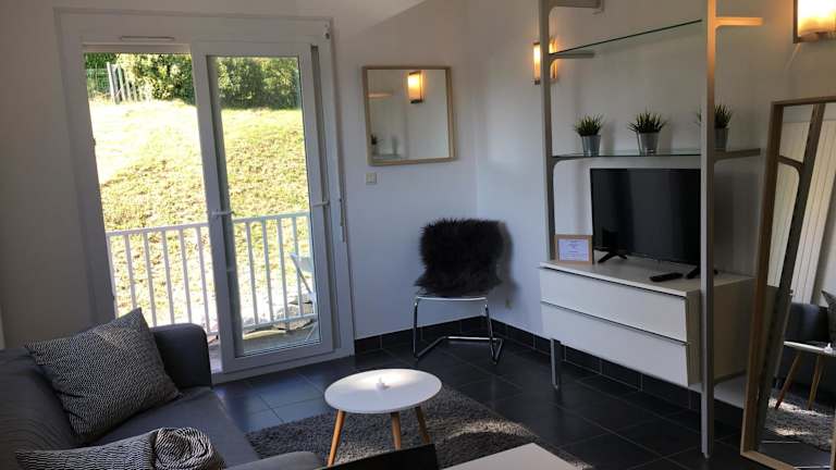 Die Ferienwohnung besteht aus einem Schlafzimmer, einem Wohnzimmer mit Flachbild-TV und einer gut ausgestatteten Küche mit Kühlschrank und Ofen. Ein Badezimmer mit Dusche ist ebenfalls vorhanden. Bettwäsche und Handtücher werden bereitgestellt.