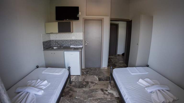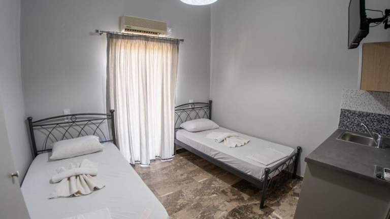 Die Zimmer sind ausgestattet mit Klimaanlage, Schreibtisch, Balkon mit Meerblick, eigenem Badezimmer, Flachbild-TV, Bettwäsche und Handtüchern. Einige Zimmer bieten zusätzlich eine Küchenzeile sowie einen Wasserkocher.