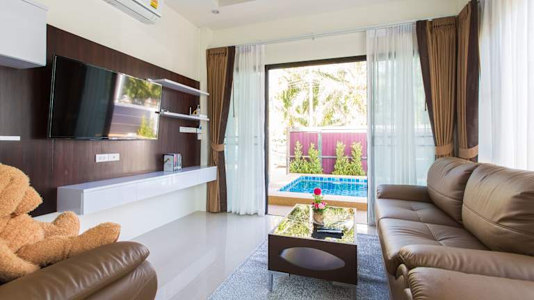 Die PB Pool Villa bietet komfortable Unterkünfte mit 2 Schlafzimmern, einem Wohnzimmer und einer voll ausgestatteten Küche. Die Villa verfügt über einen eigenen Pool, einen Garten und Grillmöglichkeiten, so dass Sie Ihren Aufenthalt in vollen Zügen genießen können. Die klimatisierten Zimmer bieten Ihnen eine angenehme Temperatur, während das kostenfreie WLAN und die kostenfreien Pflegeprodukte Ihren Komfort erhöhen. Handtücher und Bettwäsche werden gestellt, so dass Sie sich um nichts kümmern müssen.