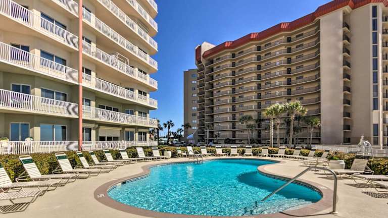 PCB Condo with Gulf View and Pool at Coral Reef Resort ist eine Ferienwohnung mit direktem Zugang zum Strand und Meerblick. Die Unterkunft ist mit Klimaanlage ausgestattet und bietet Annehmlichkeiten wie einen Balkon und kostenfreies WLAN.