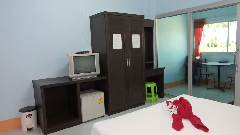 Das Peace Lanta Mansion auf Koh Lanta bietet seinen Gästen komfortable und klimatisierte Zimmer mit einem eigenen Balkon. Das Hotel befindet sich im Viertel Klong Khong und ist nur wenige Gehminuten vom Strand entfernt. WLAN ist in allen Bereichen kostenlos verfügbar und auch Parkplätze stehen kostenfrei zur Verfügung. Die Zimmer sind gut ausgestattet und verfügen über einen Kühlschrank, einen Schreibtisch, einen Sessel, einen Kleiderschrank, einen Schminktisch und ein eigenes Badezimmer mit einer Warmwasserdusche und kostenlosen Pflegeprodukten. In der Nähe des Hotels gibt es auch einen Supermarkt, der rund um die Uhr geöffnet ist.