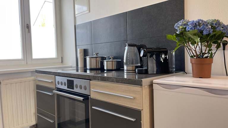 Die Ferienwohnung verfügt über eine gut ausgestattete Küche, einen gemütlichen Sitzbereich und einen Flachbild-TV. Handtücher und Bettwäsche sind im Angebot enthalten.