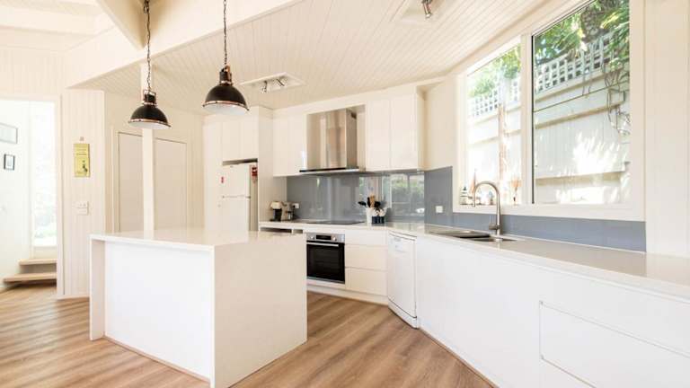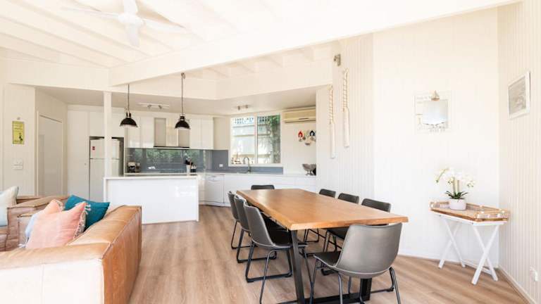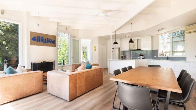 Die Zimmer des Hayden Beach House sind voll ausgestattet und beinhalten Bettwäsche, Handtücher, einen Flachbild-TV mit Kabelkanälen, einen Essbereich und eine komplett ausgestattete Küche. Die Terrasse bietet einen Blick auf den Garten.