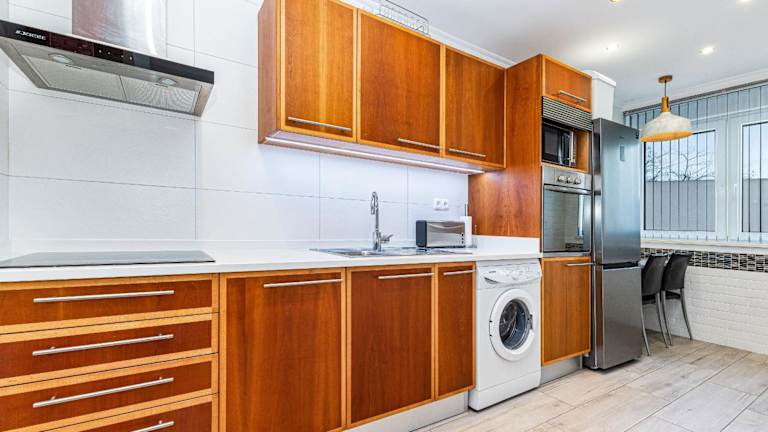 Die Ferienwohnung verfügt über 2 Schlafzimmer, eine Küche mit Kühlschrank und Ofen sowie ein Badezimmer mit Dusche, Haartrockner und Waschmaschine. Handtücher und Bettwäsche sind ebenfalls vorhanden.