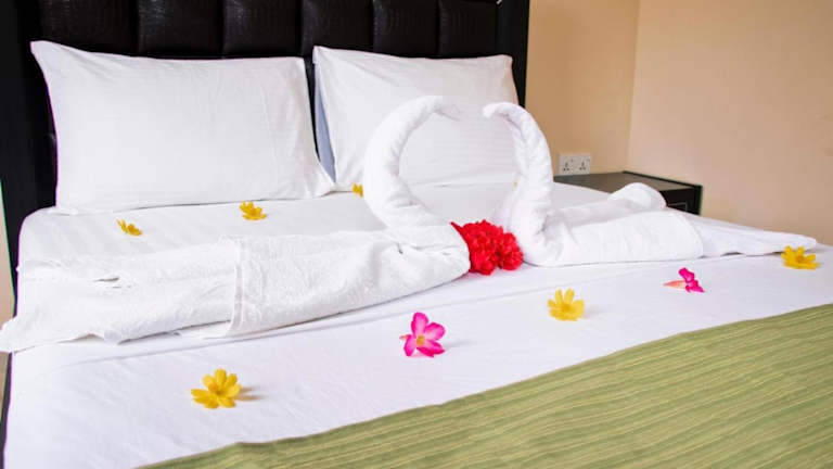 Die Zimmer im Peacock Resort sind komfortabel eingerichtet und verfügen über Annehmlichkeiten wie Klimaanlage, Kleiderschrank, Terrasse mit Seeblick, eigenes Bad, Flachbild-TV, Bettwäsche und Handtücher. Genießen Sie den Komfort und die Ruhe Ihres Zimmers während Ihres Aufenthalts.