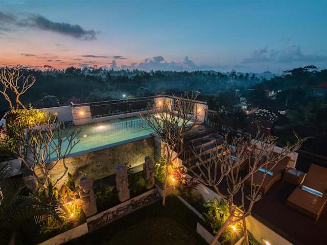 Das Pecatu Ubud Guest House in Ubud bietet eine komfortable Unterkunft mit einem Außenpool und kostenfreien Privatparkplätzen. Genießen Sie die ruhige Umgebung und die Annehmlichkeiten wie kostenfreies WLAN und eine Bar. Die Unterkunft befindet sich in der Nähe beliebter Sehenswürdigkeiten wie dem Affenwald von Ubud und dem Palast von Ubud. Die Zimmer sind klimatisiert und verfügen über einen TV, ein eigenes Bad und einige Zimmer haben sogar einen Balkon. Erkunden Sie die Umgebung mit dem Fahrradverleih der Pension oder mieten Sie ein Auto.