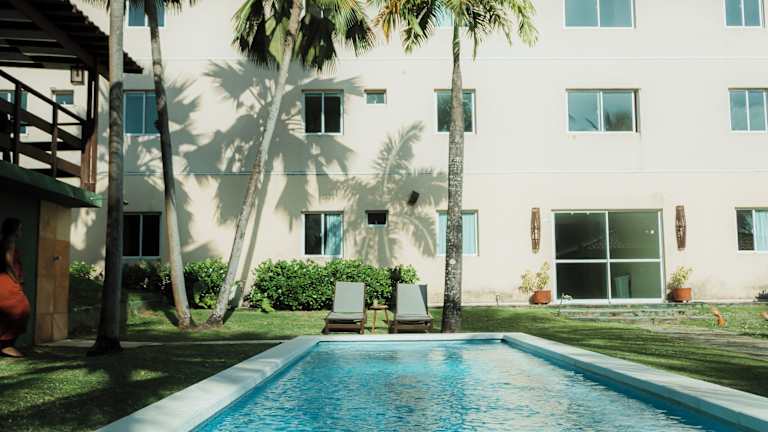 Das Pecem Beach Hotel - Aval Hotel in Pecém ist der ideale Ort für einen entspannten Strandurlaub. Umgeben von üppigem Grün und nur wenige Schritte vom Strand von Pecém entfernt, bietet das Hotel kostenfreies WLAN und ein leckeres Frühstück. Die klimatisierten Zimmer sind komfortabel ausgestattet und verfügen über einen Flachbild-TV. Genießen Sie die Ruhe im Garten oder nutzen Sie die praktischen Einrichtungen wie die Gepäckaufbewahrung und die Wäschemöglichkeiten. Kostenlose Parkplätze stehen zur Verfügung. Das Stadtzentrum von Pecem erreichen Sie in wenigen Minuten und der Flughafen Pinto Martins ist ebenfalls gut erreichbar.