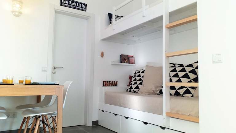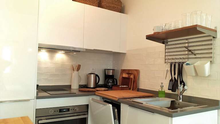 Die Ferienwohnung beinhaltet 1 Schlafzimmer und 1 Badezimmer. Zur Ausstattung gehören Bettwäsche, Handtücher, ein Flachbild-TV mit Satellitenkanälen, ein Essbereich, eine voll ausgestattete Küche und eine Terrasse mit Blick auf den Fluss.