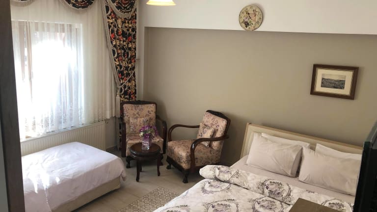 Das Pekcan Otel in Burhaniye ist eine ideale Unterkunft für Ihren Aufenthalt. Mit einem wunderschönen Garten, einer Terrasse und Meerblick bietet das Hotel eine angenehme Atmosphäre zum Entspannen. Der Strand Oren ist nur 300 m entfernt und bietet die Möglichkeit, das Meer und den Strand zu genießen. Das Hotel bietet auch einen Zimmerservice und einen Kinderspielplatz, um den Aufenthalt für Familien noch angenehmer zu gestalten. Mit einer 24-Stunden-Rezeption, Flughafentransfers und kostenfreiem WLAN in allen Bereichen sorgt das Hotel für einen komfortablen Aufenthalt. Die klimatisierten Zimmer sind gut ausgestattet und verfügen über Annehmlichkeiten wie einen Kleiderschrank, einen Wasserkocher, einen Kühlschrank, einen Safe, einen Flachbild-TV und ein eigenes Bad mit Dusche. Bettwäsche und Handtücher werden gestellt. Ein kontinentales Frühstück wird in der Unterkunft serviert, um den Tag gut zu beginnen. Das Hotel bietet auch Fahrrad- und Autovermietung an, damit Sie die Gegend erkunden können. Der Strand Ogretmenler ist nur 1,3 km entfernt und der Flughafen Balikesir Koca Seyit ist nur 9 km entfernt.
