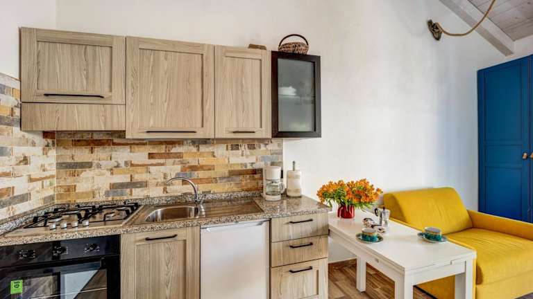 Die Ferienwohnung umfasst ein Schlafzimmer, eine Küche und ein Badezimmer. Die Zimmer sind klimatisiert und bieten einen komfortablen Aufenthalt.