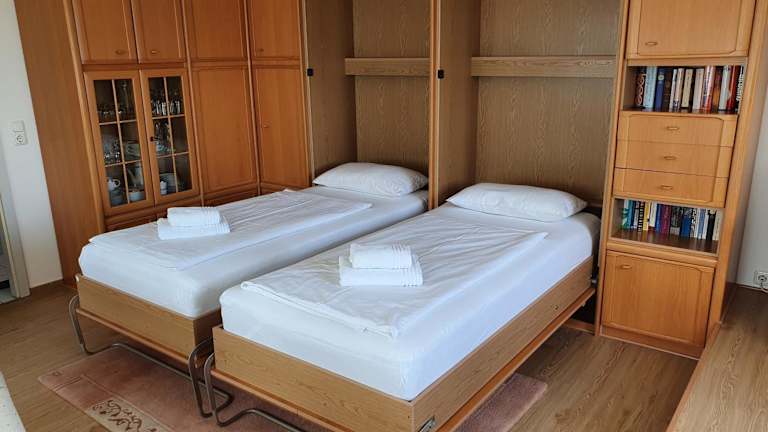 Die Ferienwohnung verfügt über ein Schlafzimmer, ein Badezimmer mit Dusche, eine gut ausgestattete Küche mit Kühlschrank und Ofen sowie einen Flachbild-TV. Handtücher und Bettwäsche können gegen Aufpreis zur Verfügung gestellt werden.