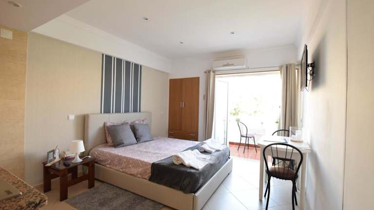 Die Ferienwohnung ist klimatisiert und umfasst 1 Schlafzimmer, ein Wohnzimmer sowie eine voll ausgestattete Küchenzeile mit Kühlschrank und Wasserkocher. Außerdem gibt es 1 Badezimmer mit Bidet und Dusche. Handtücher und Bettwäsche werden bereitgestellt.