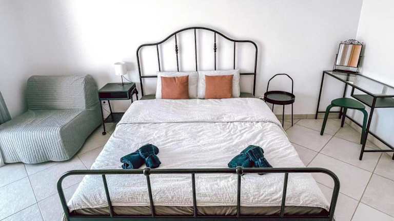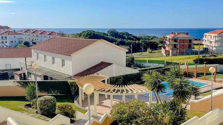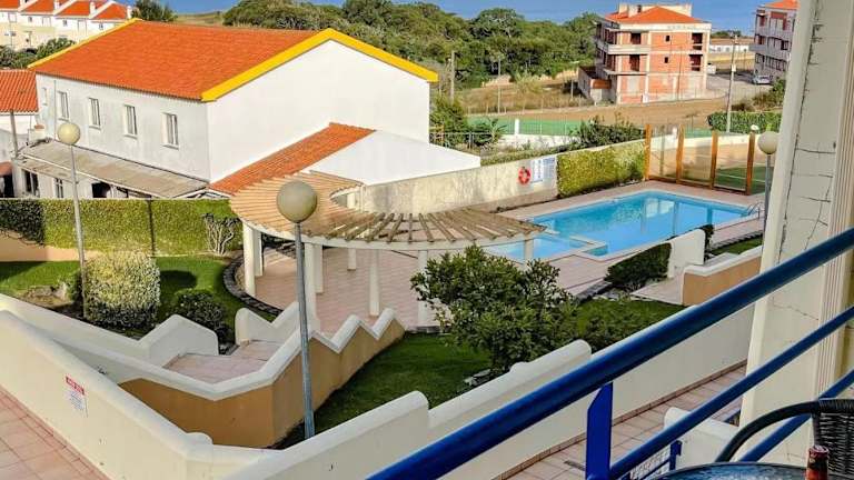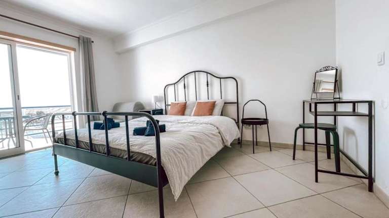 Peniche master bedroom with sea view balcony, private bathroom, shared kitchen, swimming pool, surfing resort