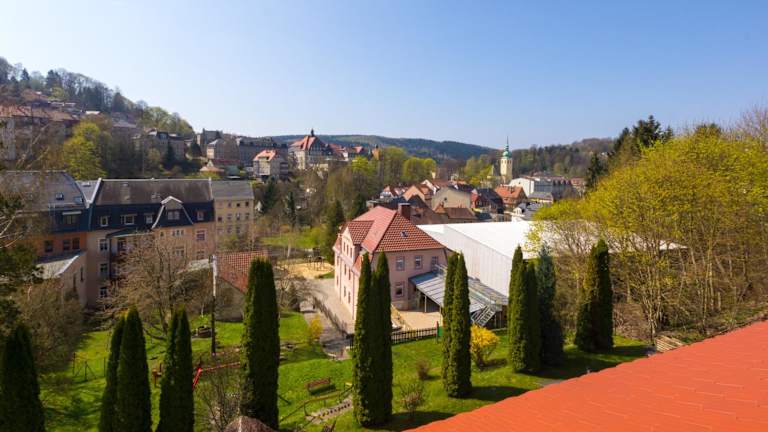 Die Pension Am Finkenberg befindet sich in Sebnitz, nur 15 km von der berühmten Bastei im Nationalpark Sächsische Schweiz entfernt. Die Umgebung bietet eine Vielzahl von Outdoor-Aktivitäten wie Wandern, Radfahren und Skifahren. Die Pension liegt in einer ruhigen Gegend und ist von schöner Natur umgeben. In der Nähe gibt es auch verschiedene Restaurants und Geschäfte. Der Flughafen Dresden ist etwa 40 km entfernt.