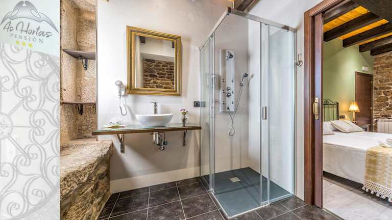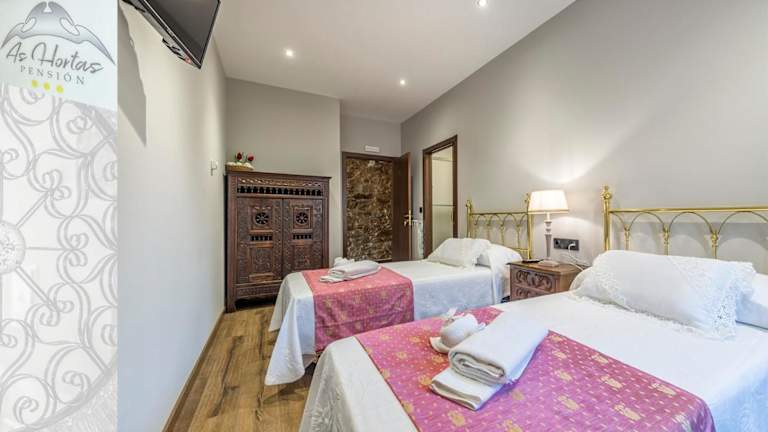 Jedes Zimmer in der Pensión As Hortas ist mit einem Kleiderschrank, einem Flachbild-TV, einem eigenen Badezimmer sowie Bettwäsche und Handtüchern ausgestattet.