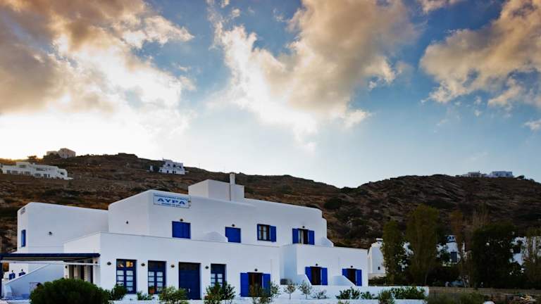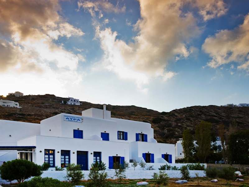 Das Avra Pension Hotel in Gialos bietet einen bequemen Aufenthalt in unmittelbarer Nähe zum Hafen und Strand von Gialos. Genießen Sie den Panoramablick auf das Ägäische Meer von Ihrem eigenen Balkon aus. Das Hotel bietet kostenfreies WLAN und Parkplätze sowie ein hausgemachtes Frühstück mit einer Vielzahl von köstlichen Speisen. Die Terrasse lädt zum Entspannen ein und die Hauptbushaltestelle ist nur wenige Gehminuten entfernt.