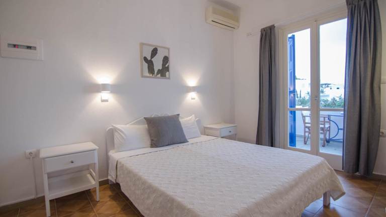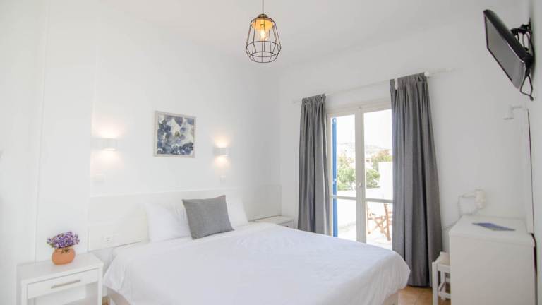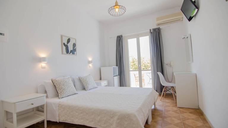 Die Zimmer im Avra Pension Hotel sind schlicht eingerichtet und bieten einen herrlichen Panoramablick auf das Ägäische Meer von Ihrem eigenen Balkon aus. Die Zimmer sind klimatisiert und mit einem LCD-TV und einem Kühlschrank ausgestattet. Im Badezimmer finden Sie Hausschuhe und einen Haartrockner.