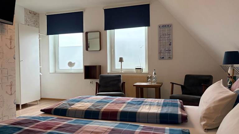 Die Pension Blaue Nordseewelle befindet sich in Neuharlingersiel, nur 500 m vom Strand entfernt. In der näheren Umgebung liegen das Deutsches Sielhafenmuseum in etwa 7,5 km Entfernung, das Schlossmuseum Jever in 29 km und der Bahnhof Norddeich in 41 km. Der Flughafen Bremen ist 129 km von der Unterkunft entfernt.
