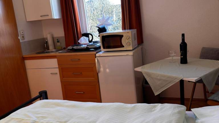 Super. Sauber, ruhig, Balkon, Tee kann man selber kochen. Freundliche Empfang,