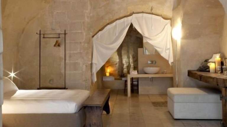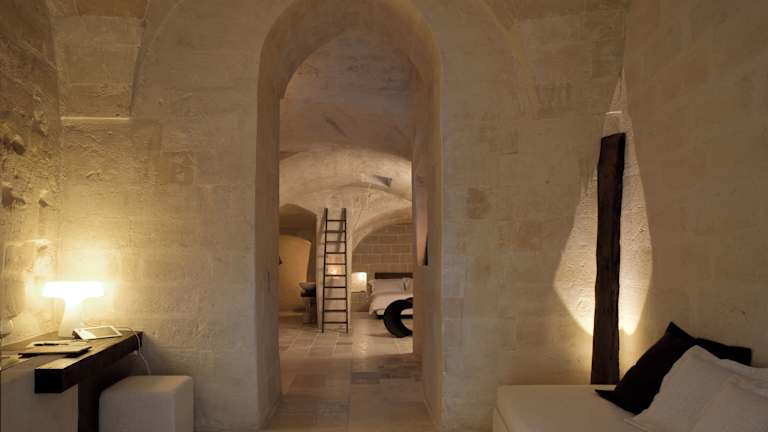 Das Corte San Pietro in Matera ist eine einzigartige Unterkunft in einem historischen Steinhaus, das geschmackvoll renoviert wurde. Die Zimmer sind elegant eingerichtet und verfügen über handgeschnitzte Holzelemente und Steinelemente. Genießen Sie den Blick auf den Innenhof und das köstliche Frühstück im Sommer. Das Hotel bietet auch einen Shuttleservice, Fahrradverleih und Tourenschalter für Ihre Bequemlichkeit. Die Lage des Hotels ist ideal, um die UNESCO-geschützte Stadt Matera Sassi und die umliegenden Naturschutzgebiete zu erkunden.