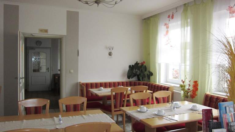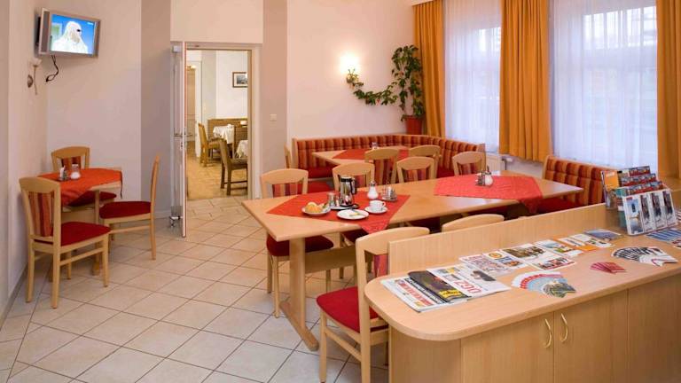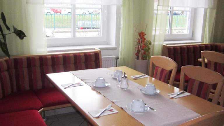 Jeden Morgen wird ein Frühstück im kleinen Frühstücksraum neben der Rezeption der Pension Elisabeth serviert. Hier können Sie den Tag mit einer köstlichen Mahlzeit beginnen, bevor Sie die Umgebung erkunden.