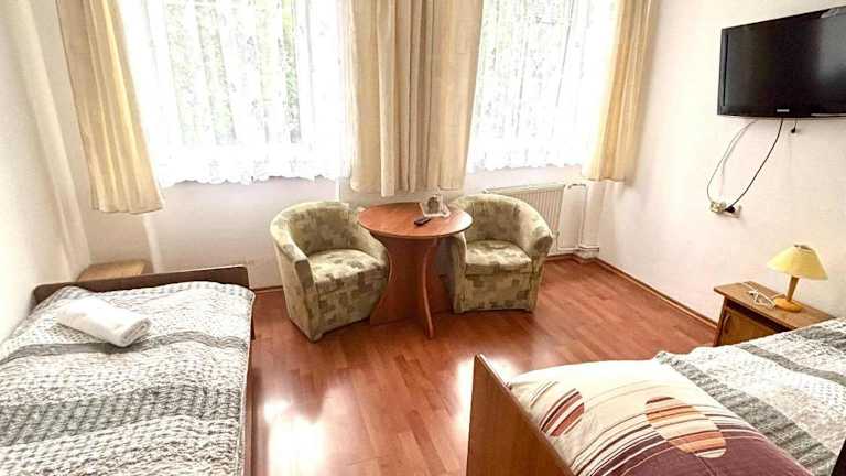 Die Pension Fortuna in Świeradów-Zdrój (Bad Flinsberg) bietet eine ruhige Lage inmitten einer grünen Umgebung. Hier können Sie sich auf einen angenehmen Aufenthalt freuen, der mit einem Privatparkplatz, Billardtischen und einem breiten Angebot an Kuranwendungen aufwartet. Die individuell eingerichteten Zimmer sind mit modernen Annehmlichkeiten ausgestattet und bieten teilweise einen herrlichen Blick auf die Berge. Im hauseigenen Restaurant werden Ihnen köstliche Gerichte der polnischen und europäischen Küche sowie leckere Kuchen serviert. Genießen Sie entspannte Momente an der Bar oder im Sommer im idyllischen Biergarten. Zusätzlich werden regelmäßig Grillabende mit Lagerfeuer und Livemusik veranstaltet. Die Pension Fortuna befindet sich nur 700 m vom Skilift Gondola und etwa 150 m vom Stadtzentrum entfernt.