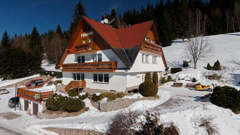 Die Pension Fuka befindet sich in idealer Lage, nur 500 m vom Zentrum von Špindlerův Mlýn und dem Aquapark entfernt. Das Skigebiet erreichen Sie in nur 400 m. Die Pension bietet einen Transfer zum 2 km entfernten Busbahnhof an. In der Umgebung können Sie Langlaufen, Wandern, Mountainbiken und die Schneekoppe, das höchste Gebirge der Tschechischen Republik, liegt nur 12 km entfernt.