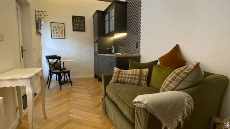Die Unterkünfte der Pension Gablenz verfügen über eine Küchenzeile, die mit einem Kühlschrank, einem Geschirrspüler und einer Herdplatte ausgestattet ist.