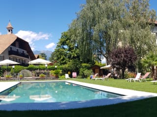Rund um’s Haus ist viel Platz für ein gemütliches, entspanntes Sonnen auf der Liegewiese oder relaxen Sie einfach auf unser großzügigen Terrasse. Das große Frei-Schwimmbad sorgt für eine angenehme Erfrischung und lädt zum entspannten Plätschern ein. Für unsere kleinen Gäste steht ein großzügiger Kinderspielplatz zur Verfügung.