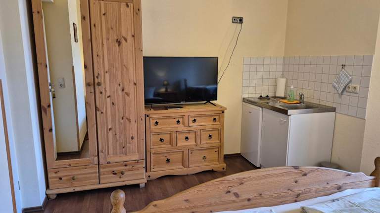 Die Pension Gina in Görlitz bietet gemütliche Zimmer in der Nähe des Stadtzentrums und des Bahnhofs. Die Zimmer sind mit hellen Holzmöbeln und einem Flachbild-TV ausgestattet. Einige Zimmer verfügen über eine Küchenzeile oder einen Balkon. Die Gemeinschaftsküche steht den Gästen kostenlos zur Verfügung und bietet alle notwendigen Geräte. Entspannen Sie im Aufenthaltsraum mit TV und gemütlicher Sitzecke. Die Pension liegt in der Nähe des Schlesischen Museums und der Neiße. Parkplätze stehen gegen Aufpreis zur Verfügung und die Autobahn A4 ist nur 3 km entfernt.