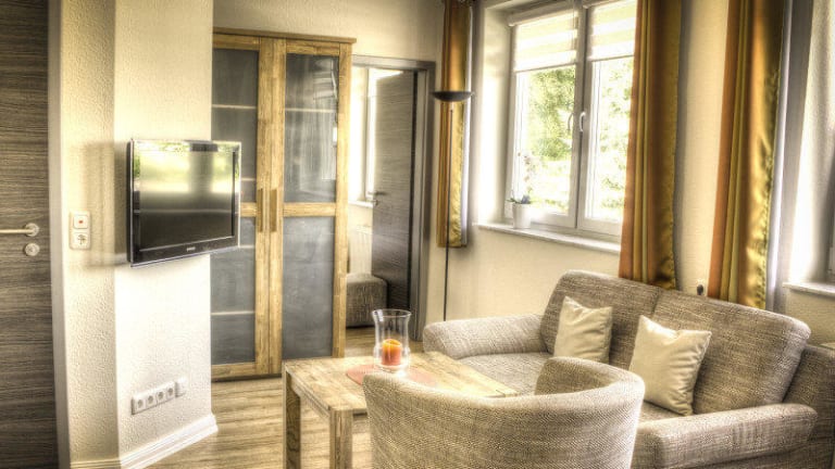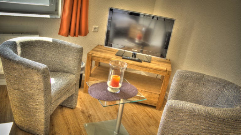 Die Zimmer verfügen über Boxspringbetten, markante Eichenmöbel, einen Flachbild-Sat-TV und ein eigenes modernes Bad. Das Familienzimmer (4 Betten) besteht aus zwei Zimmern und bietet genügend Platz für vier Personen.