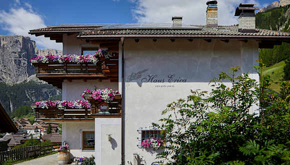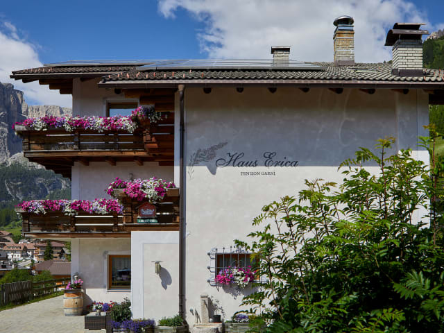 Die Pensione Erica liegt in einer ruhigen Lage in Kolfuschg und ist nur 20 m von der Bushaltestelle und 5 Gehminuten vom Stadtzentrum entfernt. Von hier aus haben Sie direkten Zugang zu den Skipisten und können Ihre Winteraktivitäten ganz bequem genießen. Die umliegende Umgebung bietet eine atemberaubende Landschaft und ist ideal für Naturliebhaber. Der Naturpark Puez-Geisler befindet sich direkt vor dem Haus und lädt zu Wanderungen und Erkundungen ein. Die Städte Corvara in Badia und Wolkenstein in Gröden sind mit dem Auto in etwa 20 Minuten erreichbar.