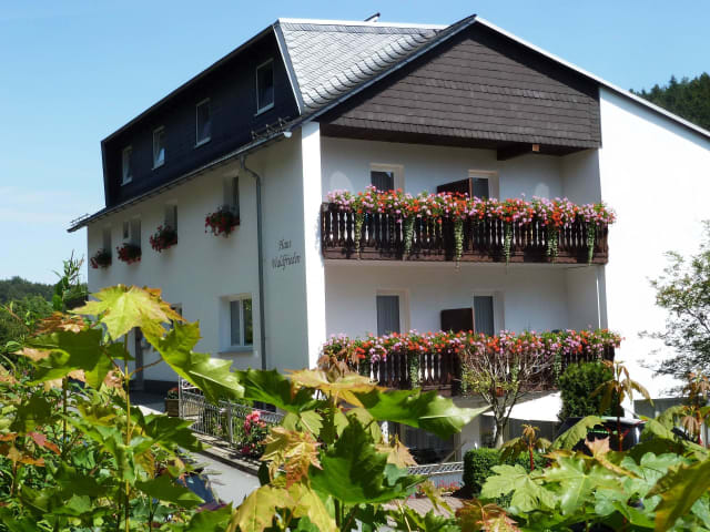 Unsere familiär geführte Frühstückspension liegt im Zentrum von Willingen in einer ruhigen Seitenstraße unmittelbar am Waldrand. Direkt am Uplandsteig, den Spazierwegen und Mountainbike-Routen gelegen. Ein optimaler Ausgangspunkt für einen erlebnisreichen Wander-, Bike-, Erlebnis- oder Erholungsurlaub. Einkaufsmöglichkeiten, Restaurants, Kur- und Freizeiteinrichtungen und Cafés sind in nur wenigen Gehminuten zu erreichen. Gepflegte und behagliche Räume sollen Ihr Urlaubszuhause zum Wohlfühlen sein. Schlafen Sie wohl in unseren Urlaubszimmern. Relaxen Sie auf dem Balkon mit einem schönen Blick auf die Berge oder entspannen Sie in der gemütlichen Sitzecke bei spannender Lektüre oder beim Fernsehen. Dusche/WC und Haartrockner sind selbstverständlich, ein Wertsafe und ein Radio sind eine weitere Annehmlichkeiten. Ein gemütlicher Aufenthaltsraum mit Sat-TV, Büchern, Gesellschaftsspielen sowie eine mit Blumen umsäumte Sonnenterrasse stehen Ihnen jederzeit zur Verfügung. Wir verwöhnen Sie mit einem reichhaltigen Sauerländer Frühstück. Gerne stellen wir Ihnen ein Lunchpaket zusammen. Für Sie als Gast im Haus Waldfrieden sind neben der Benutzung der Ettelsberg- Seilbahn, das Lagunen- Erlebnisbad, die Sommerrodelbahn, Eissporthalle, Besucherbergwerk, Kletterhalle, Standseilbahn Mühlenkopfschanze und vieles mehr, gratis mit dabei.