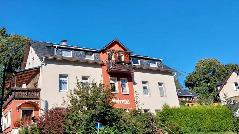 Bad Elster zählt zu den 10 beliebtesten Kurorten Deutschlands. Auf Sie warten Erholung, Entspannung, Wellness, viele verschiedene Kuranwendungen, Theater, gutes Essen und idyllische Landschaft mit sauberer Luft. Sie können schwimmen, wandern, Rad fahren oder Sie flanieren durch die wunderschönen Parkanlagen und vieles mehr. Als Ausgangspunkt eignet sich unsere ruhig gelegene Pension "Helvetia" bestens. Sie können alle Kur- und Kultureinrichtungen bequem zu Fuß erreichen. Durch den schönen Albertpark spaziert, kommen Sie nach nur 500 Meter ins Kurzentrum. Alle Pauschalangebote der Sächsischen Staatsbäder GmbH sind buchbar. Wir wünschen Ihnen einen schönen und erholsamen Aufenthalt.