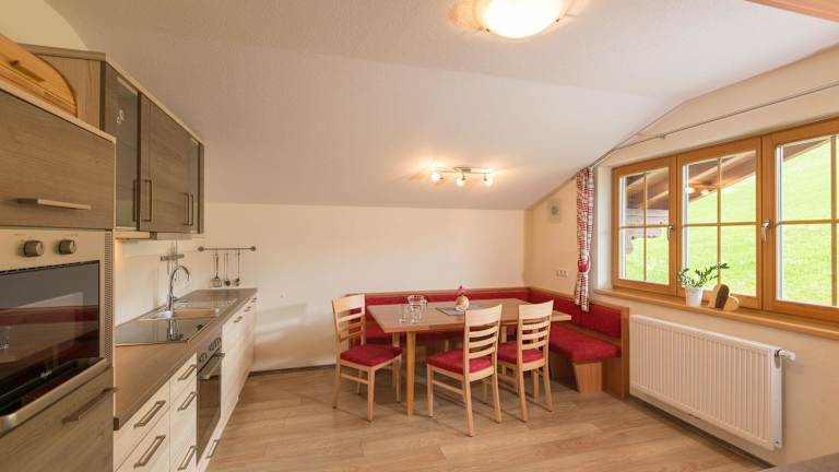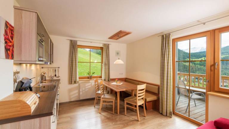 Die geräumigen Apartments im Hinteregghof verfügen über ein gemütliches Wohnzimmer mit einem Flachbild-Kabel-TV, eine voll ausgestattete Küche mit einem Essbereich, ein komfortables Badezimmer und einen Balkon oder eine Terrasse, von denen aus Sie die atemberaubende Landschaft der Umgebung genießen können. Auf Anfrage werden Ihnen jeden Morgen frische Brötchen geliefert, damit Sie Ihren Tag mit einem leckeren Frühstück beginnen können.